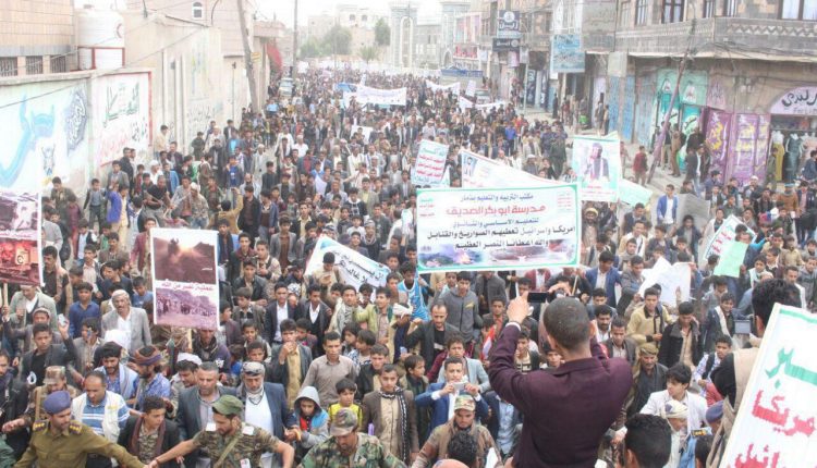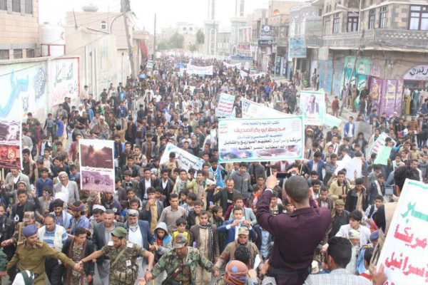 خرج أبناء مدينة ذمار ،اليوم الأربعاء، في مسيرة جماهيرية حاشدة لمباركة انتصارات الجيش واللجان الشعبية في مختلف الجبهات والتي أهمها عملية “نصر من الله” بمحور نجران وإعلانا للنفير العام صوب الجبهات.