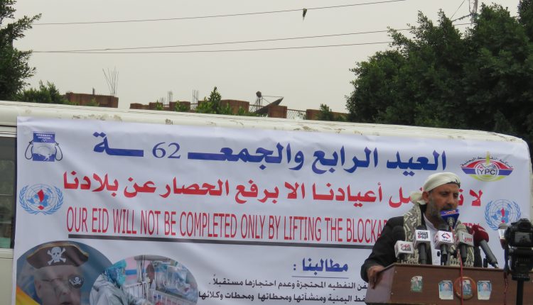 بالصــور: في الجمعة الـ62 والعيد الرابع الأضرعي: الأمم المتحدة لم تتجاوب مع مطالب اليمنيين المتكررة بالإفراج عن سفن النفط