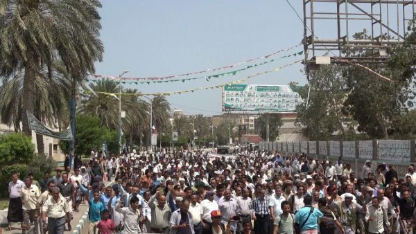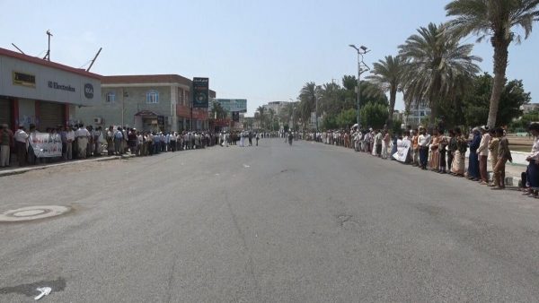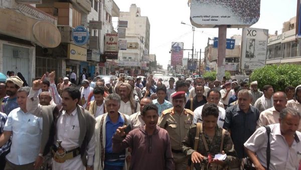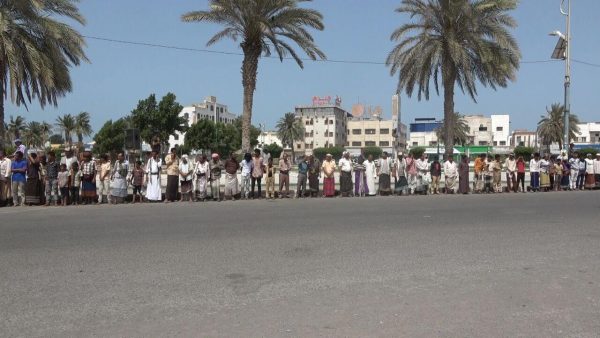 وقفة ومسيرة احتجاجية بالحديدة تندد بجريمة اغتصاب امرأة من قبل المرتزقة السودانيين بالتحيتا
