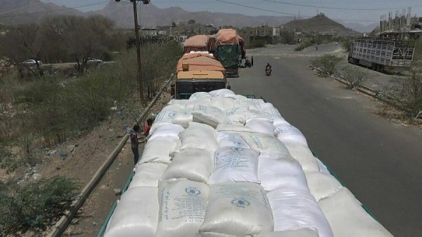 ضبط جمارك الراهدة بمحافظة تعز اليوم الخميس 1600 كيس دقيق على متن قاطرتين تابع لبرنامج الأغذية العالمي أثبتت الفحوصات الأولية أنه غير صالح للاستخدام الآدمي لانتشار الحشرات واليرقات فيه.
