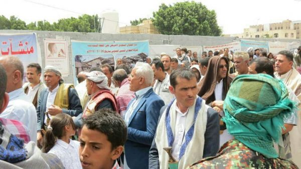 نظم موظفو شركة النفط اليمنية والنقابات والهيئات التابعة لها المعتصمين امام مكتب الأمم المتحدة بصنعاء أمس عقب صلاة الجمعة وقفة احتجاجية، للتنديد باستمرار العدوان السعودي الأمريكي.