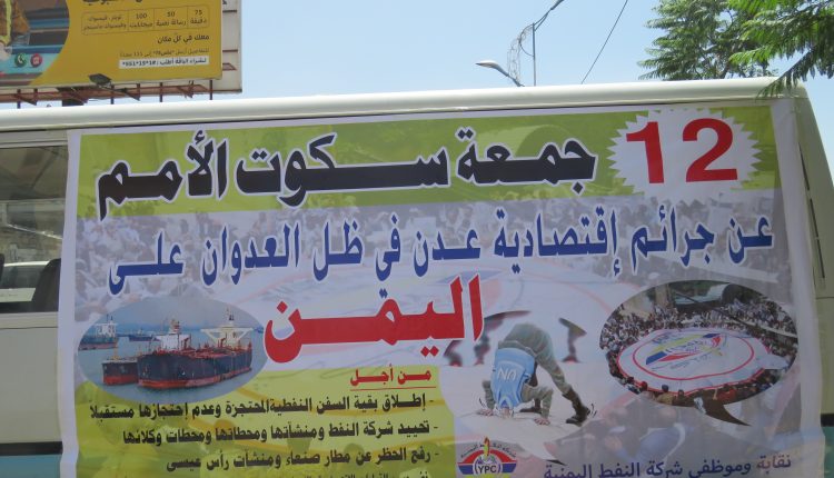 فيما أكد الناطق الرسمي لشركة النفط أمين الشباطي، استمرار الاعتصام والوقفات الاحتجاجية أمام الأمم المتحدة حتى يتم اطلاق كافة السفن النفطية المحتجزة من قبل تحالف العدوان.