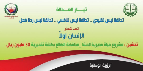 تحت شعار الانسان اولاً تم اليوم بصنعاء الإعلان عن تأسيس تحالف تيار العدالة التنموي الاجتماعي الذي ضم تنظيم مستقبل العدالة وحزب الشعب الديموقراطي “حشد”