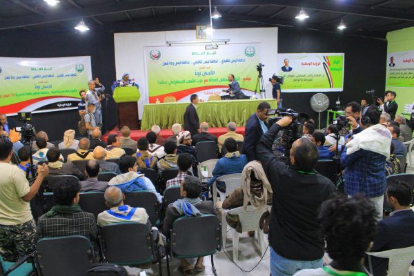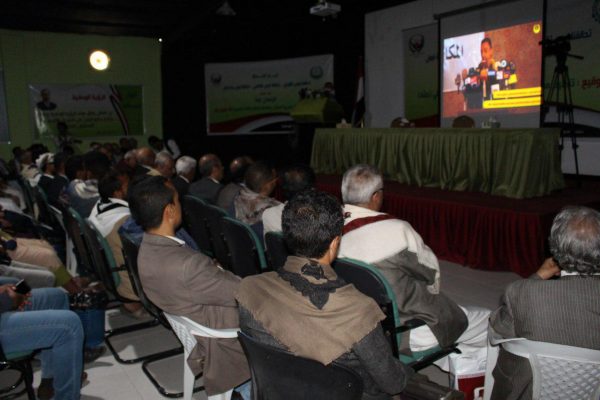 وقد شهد حفل ومراسيم التوقيع عرض فيلم وثائقي عن نشاطات وبرامج ومشاريع التنظيم خلال اربع سنوات من العدوان والاعلان عن تدشين مشروع توفير المياه لمديرية الحشا بمحافظة الضالع بتكلفة 30 مليون ريال .