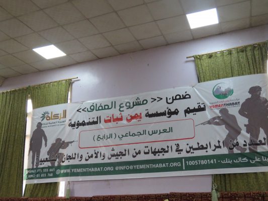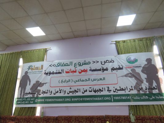 من جانبه أوضح مدير العلاقات والإعلام بمؤسسة يمن ثبات إبراهيم الشرفي أن هذا العرس الجماعي هو الرابع ضمن مشروع العفاف الذي دشنته المؤسسة بالشراكة مع جهات رسمية مطلع العام الجاري في إطار الاهتمام بالمرابطين.