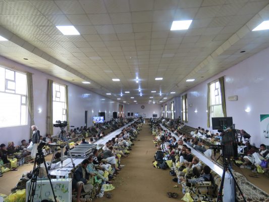 احتفل 80 عريسا من الجيش واللجان الشعبية المرابطين في الجبهات اليوم بزفافهم في العرس الجماعي الرابع الذي نظمته مؤسسة يمن ثبات التنموية بأمانة العاصمة، بدعم من الهيئة العامة للزكاة .