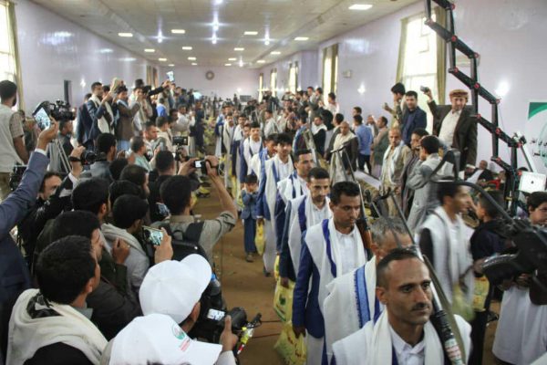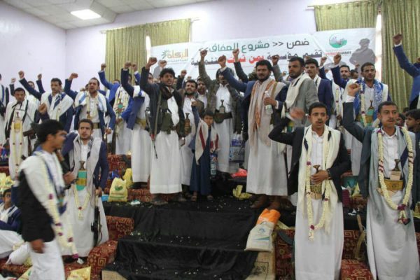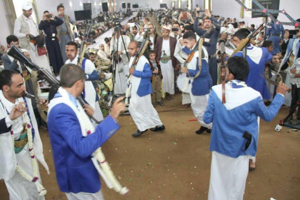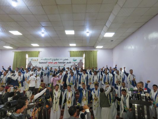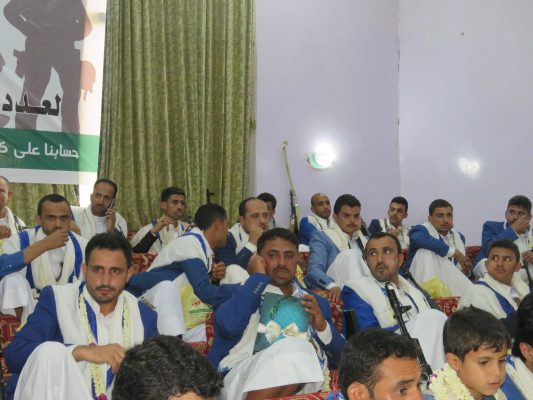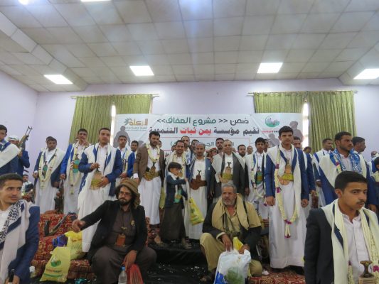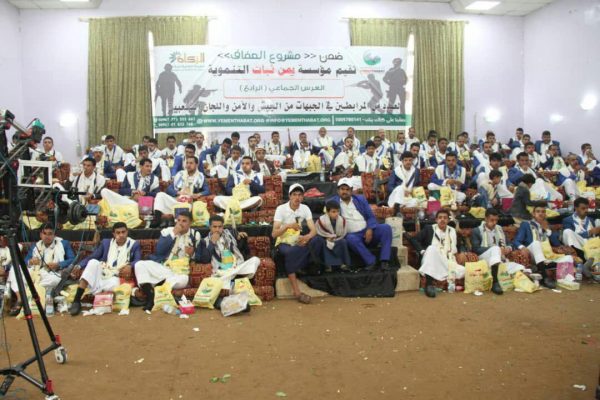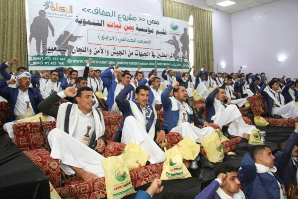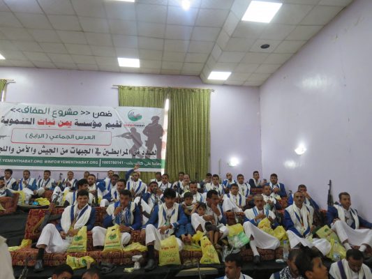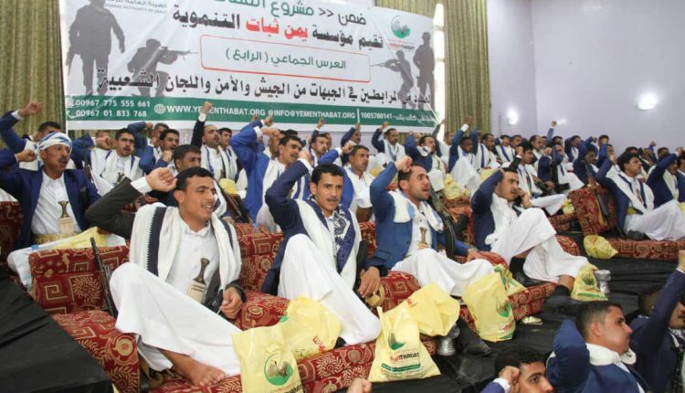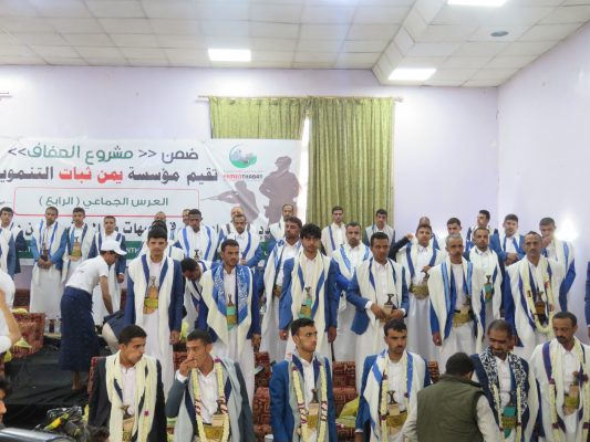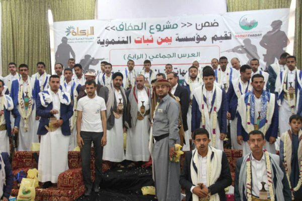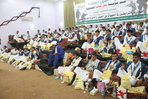 بالصـور : مؤسسة يمن ثبات التنموية تنظم عرس جماعي لـ80 عريسا من الجيش واللجان الشعبية