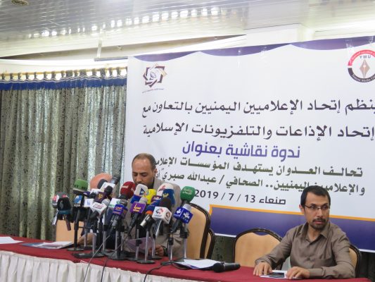 نظم اتحاد الإعلاميين اليمنيين واتحاد الإذاعات والتلفزيونات الإسلامية ،اليوم السبت، ندوة نقاشية حول “استهداف تحالف العدوان للمؤسسات الاعلامية والإعلاميين اليمنيين.. الصحافي عبدالله صبري أنموذجاً”.