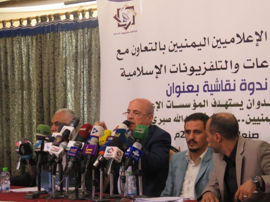 أمين عام اتحاد الإعلاميين اليمنيين “حسن حمود شرف الدين” وعضو اتحاد الاذاعات والتلفزيونات الإسلامية “زكريا الشرعبي” أوضحوا أن إقامة هذه الندوة يأتي في إطار الفعاليات التضامنية مع رئيس اتحاد الاعلاميين الصحافي عبدالله صبري الذي تعرض لاستهداف مباشر من قبل تحالف العدوان بهدف تصفيته وأسرته.