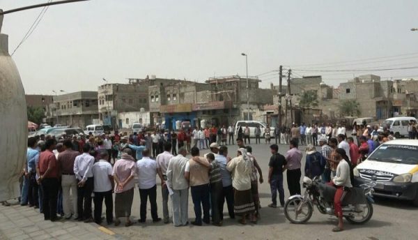 وقفة لعمال مؤسسة المياه والصرف الصحي بالحديدة للتنديد بخروقات العدوان