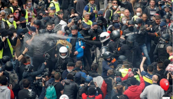 وعرض تلفزيون (بي.إف.إم) صورا تظهر الشرطة وهي تطلق الغاز المسيل للدموع لتفريق المحتجين الذين حاولوا قطع الطريق بعوائق معدنية وصناديق قمامة وحطام. وكان بعضهم ملثما.