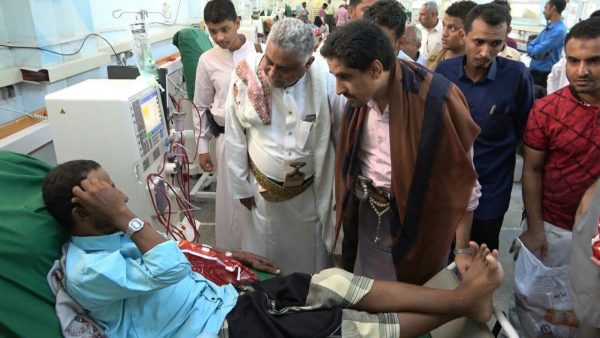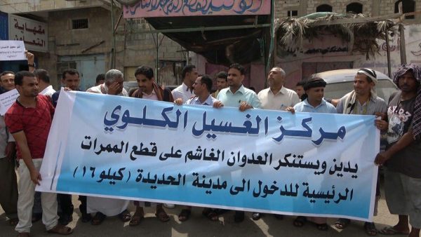موظفو مركز الغسيل الكلوي بالحديدة يستنكرون جرائم العدوان وصمت الأمم المتحدة
