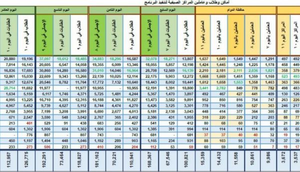 * مرفق في الصورة كشف تفصيلي يظهر حجم التفاعل الشعبي مع المراكز الصيفية خلال الأربعة الأسابيع الأولى