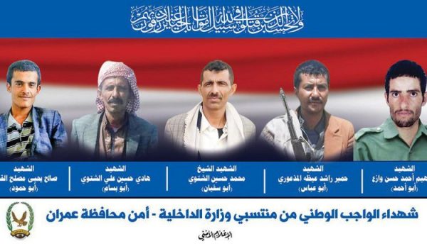 وعبرت الداخلية في بيان لها عن الاعتزاز والفخر بالتضحية التي قدمها الشهداء حمير راشد عيظه المذعوري، هادي حسين علي الشتوي ،  صالح بحيى القعود و إبراهيم احمد وازع ، في سبيل الواجب والحفاظ على الأمن والاستقرار.