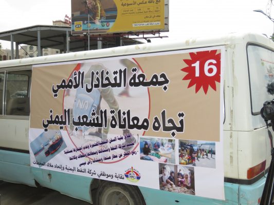 وطالبوا الأمم المتحدة الاضطلاع بمسئولياتها بالضغط على دول التحالف لفتح ميناء راس عيسى النفطي ورفع الحظر عن مطار صنعاء الدولي وتحييد الاقتصاد الوطني ككل وشركة النفط ومنشآتها ومرافقها ومحطات وكلاءها باعتبارها جزء لا يتجزأ من منظومة الاقتصاد الوطني.