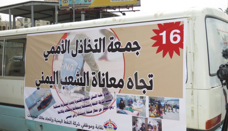 بالصـور : موظفو شركة النفط ينددون باستمرار احتجاز تحالف العدوان للسفن النفطية
