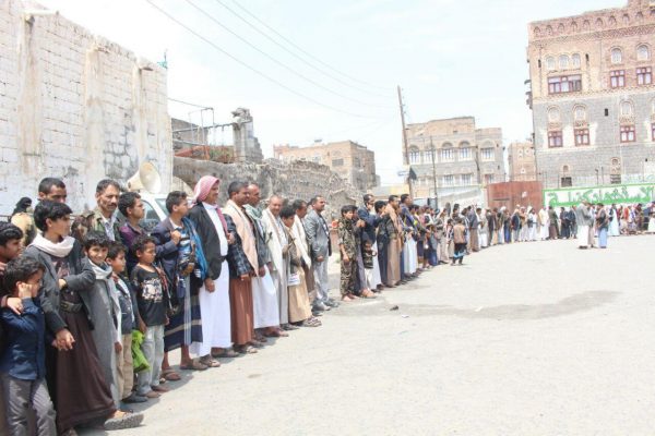 وخلال الوقفة المسلحة ردد الحاضرين هتافات وشعارات الحرية كذلك المنددة بالجرائم المتواصلة بحق الأبرياء والتي آخرها مجزرة سوق آل عياش في صعدة.