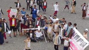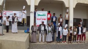 نظم طلاب مركز الإمام الحسين بن علي الصيفي ،اليوم الخميس، وقفة احتجاجية إحياءً لذكرى استشهاد طلاب المراكز الصيفية الذين أستهدفهم طيران العدوان الأمريكي السعودي بمدينة ضحيان في العام 2018 م وتنديداً بالجريمة البشعة التي أرتكبها طيران العدوان بسوق مديرية قطابر بآل ثابت بمحافظة صعدة والتي خلفت أكثر من 30 ما بين شهيدوجريح.