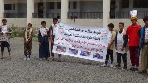 وقفة احتجاجية طلابية في عمران تنديداً بجريمة سوق آل ثابت بمحافظة صعدة