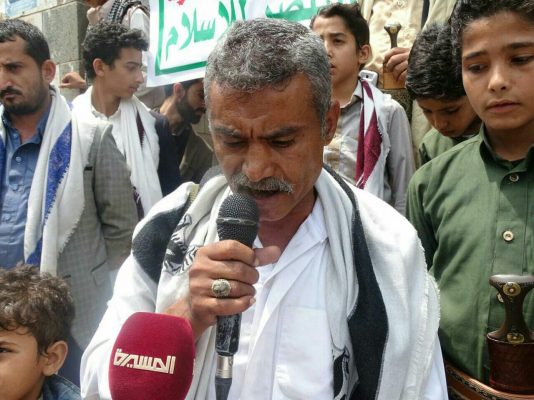 نظم أبناء ومشائخ وعقال ووجهاء وأعيان مركز القلعة مربع الظهرين بمدينة حجة ، اليوم الجمعة، وقفة احتجاجية مسلحة تنديدا واستنكارا بالمجزرة التي ارتكبها العدوان السعودي الأمريكي بحق أطفال ونساء آل ثابت بمحافظة صعدة وجميع المجازر التي ارتكبها العدوان السعودي الامريكي بحق ابناء الشعب اليمني.
