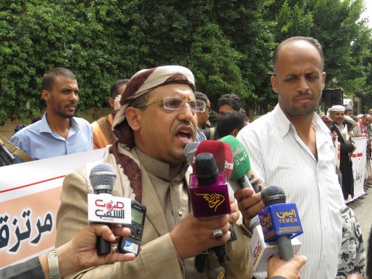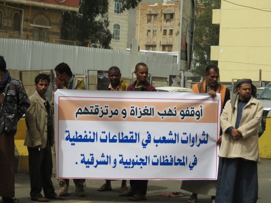كما طالب المحتجون بالتحرك قانونياً لمساءلة وملاحقة المرتزقة بتهم التفريط بثروات الوطن، والامتناع عن صرف مرتبات الموظفين بالتمييز بين أبناء الجمهورية اليمنية.