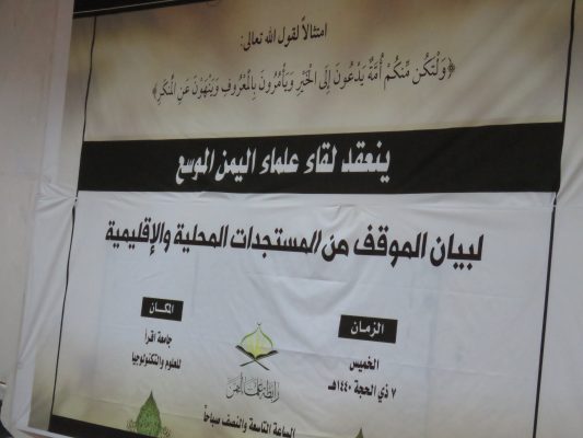 عٌقد بصنعاء اليوم اللقاء الموسع لعلماء اليمن لتدارس الموقف بشأن المستجدات المحلية والإقليمية.