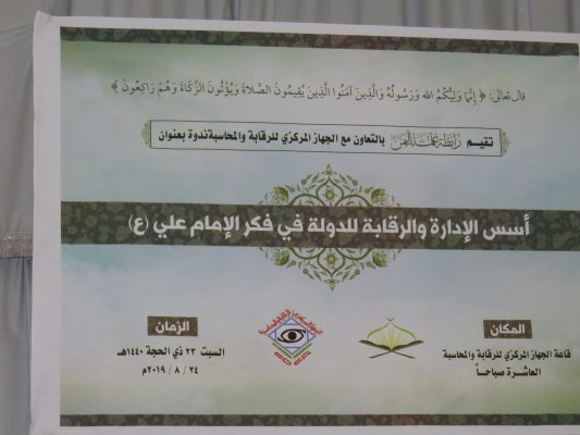 توصيات ندوة: أسس الإدارة والرقابة للدولة في فكر الإمام علي عليه السلام المنعقدة في الجهاز المركزي للرقابة والمحاسبة بالعاصمة صنعاء بمناسبة ذكرى الولاية بتاريخ 23-ذو الحجة-1440هــ الموافق 24-8-2019م