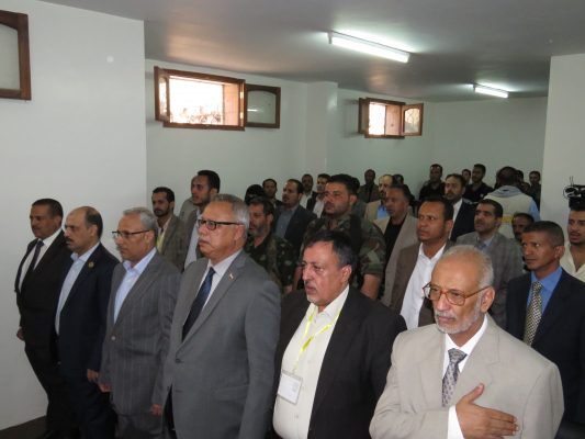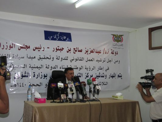 عقب ذلك قام رئيس الوزراء الدكتور عبدالعزيز صالح بن حبتور ومعه وزير الشؤون القانونية والوزراء الحاضرين بافتتاح المركز وتدشين عمله رسميا.