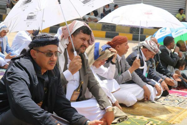 بالصـور : وقفة احتجاجية لموظفي شركة النفط أمام مكتب الأمم المتحدة بالعاصمة صنعاء