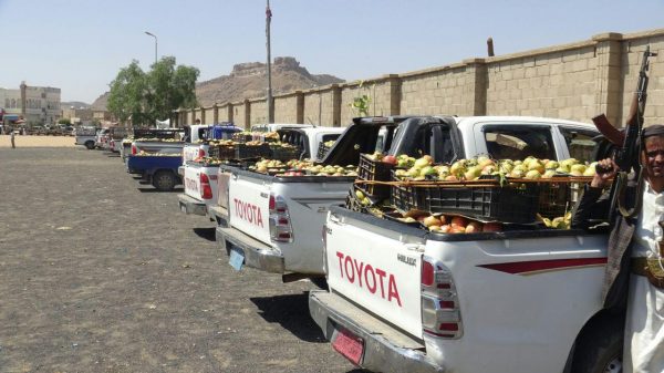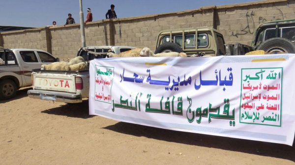 مديرية سحار بصعدة تقدم قافلة غذائية ومالية للجيش واللجان الشعبية