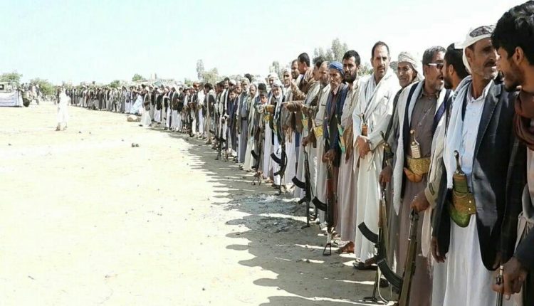 وأثناء تسيير القافلة نضم الحاضرون وقفة قبلية مسلحة مؤكدين جهوزيتهم للتوجه للجبهات لمواجهة المحتلين والمخدوعين .