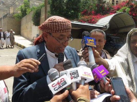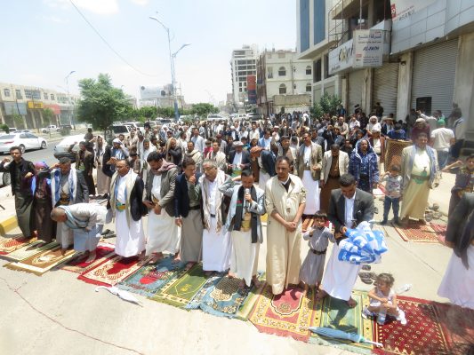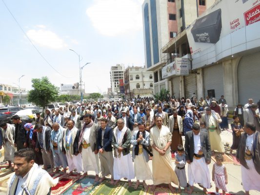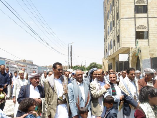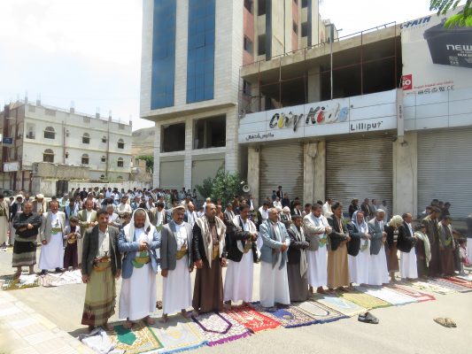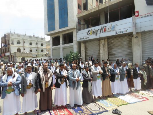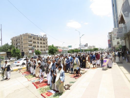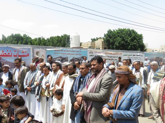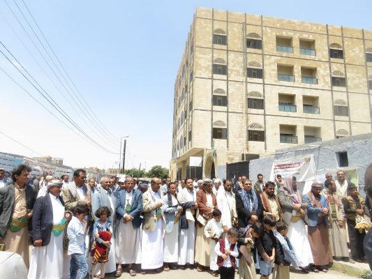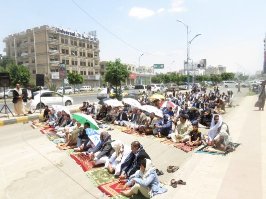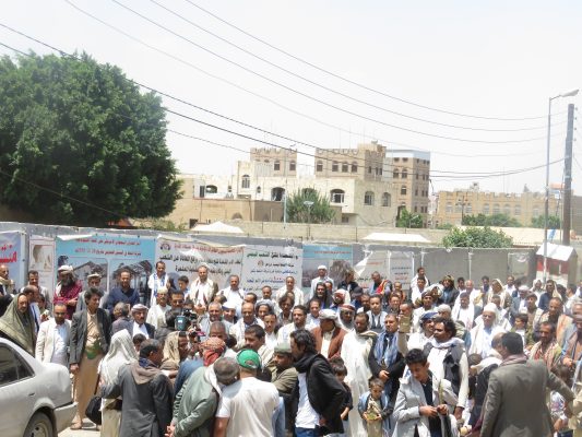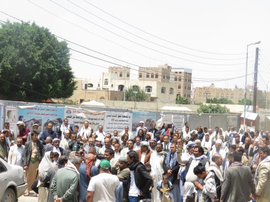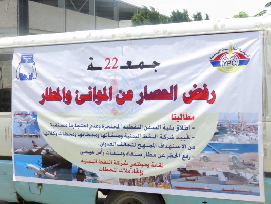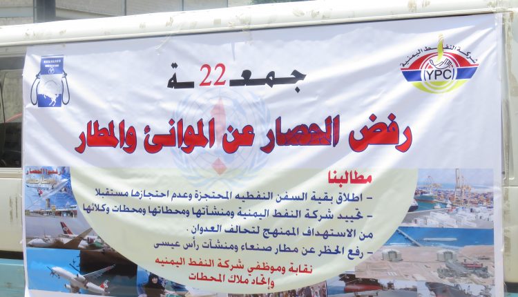 نظم موظفو شركة النفط اليمنية والنقابات والهيئات التابعة لها اليوم وقفة احتجاجية عقب صلاة الجمعة ال 22 امام مكتب الامم المتحدة بصنعاء بعنوان (رفض الحصار عن الموانئ والمطارات ) .