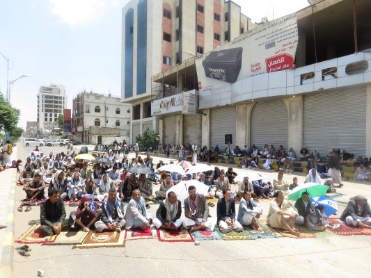 وتأتي وقفة اليوم الاحتجاجية امتداداً للاعتصام المفتوح الذي ينفذه موظفو شركة النفط اليمنية امام مكتب الامم المتحدة منذ 154 يوم