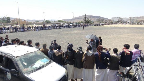 وخلال تسيير القافلة نظم المشاركون وقفة قبلية مسلحة تأكيدا على مواصلة الصمود ، وتنديدا بجرائم العدوان السعودي الأمريكي بحق أبناء الشعب اليمني، مؤكدين أن هذا العطاء هو غيض من فيض مما هو واجب عليهم تجاه الجيش واللجان الشعبية الذين يقدمون الدماء في سبيل الدفاع عن الوطن .