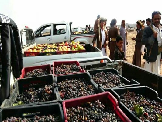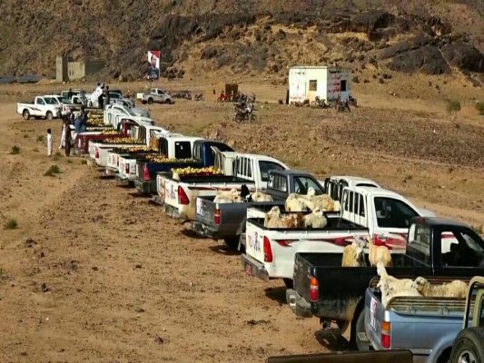 سير أبناء عزلة صبر بمديرية سحار  بمحافظة صعدة ،اليوم الأحد، قافلة غذائية من المواشي والرمان والعنب ومواد غذائية متنوعه دعماً واسنادا لأبطال الجيش واللجان الشعبية المرابطين في جبهات العزة والكرامة وفاء لدماء الشهيد الرئيس صالح الصماد.