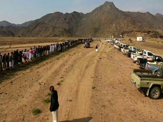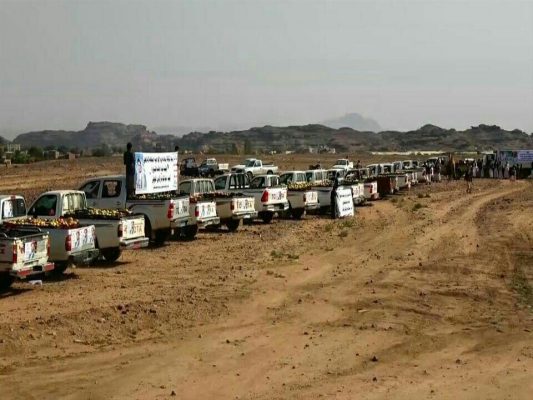 أبناء مديرية سحار بصعدة يسيرون قافلة غذائية لأبطال الجيش واللجان الشعبية