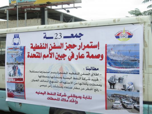 وخلال الوقفة الاحتجاجية حذر الناطق الرسمي لشركة النفط و نائب المدير التجاري امين الشباطي من تفاقم الوضع الانساني في اليمن بسبب استمرار احتجاز التحالف لسفن المشتقات النفطية ومنع وصولها الى ميناء الحديدة .