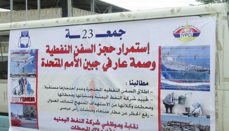 وقال الاشرم موظفو شركة النفط كانوا يعولون على هذه الهيئة ان تقوم بواجبها تجاه ما يقوم به تحالف العدوان من احتجاز مستمر لسفن المشتقات النفطية لكن للأسف دور الامم المتحدة غائب ولم تحرك ساكناً رغم دخول الاعتصام امام مكتبها اليوم ال 161 ولهذا فلا داعي لوجودها اذا لم تقم بواجبها .
