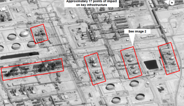 وقالت إنرجي أسبكتس أيضا إن الهجمات ربما قلصت طاقة التكرير بأرامكو بما يصل إلى مليون برميل يوميا بالرغم من أنه لم يتسن تأكيد ذلك ولم يتضح إلى أي من مصافي أرامكو السعودية تشير شركة الاستشارات.
