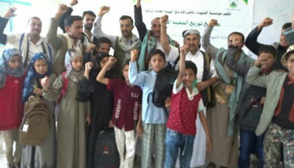 دشنت مؤسسة الشهداء بالشراكة مع الهيئة العامة للزكاة ، اليوم الاحد، مشروع توزيع الحقيبة المدرسية لأبناء الشهداء الملتحقين بالمدارس للعام الدراسي 2019 _ 2020 في محافظة حجة وعددها 2500 حقيبة .
