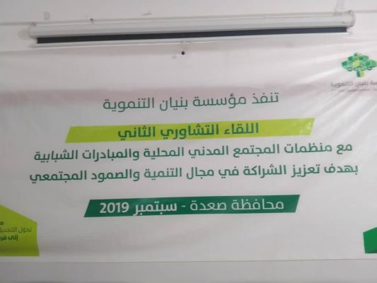 نظمت مؤسسة بنيان التنموية اليوم اللقاء التشاوري الثاني مع منظمات المجتمع المدني و المبادرات الشبابية بصعدة.
