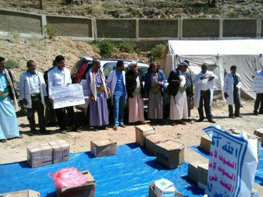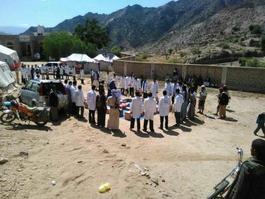 اقام مكتب الصحة بمديرية المغربة بمحافظة حجة وطواقمه الصحية والفنية، اليوم الاثنين، وقفة احتجاجية مع تقديم قافلة صحية عينية دعماً واسناداً للمجاهدين من الجيش واللجان الشعبية المرابطين في جبهات العزة والكرامة.
