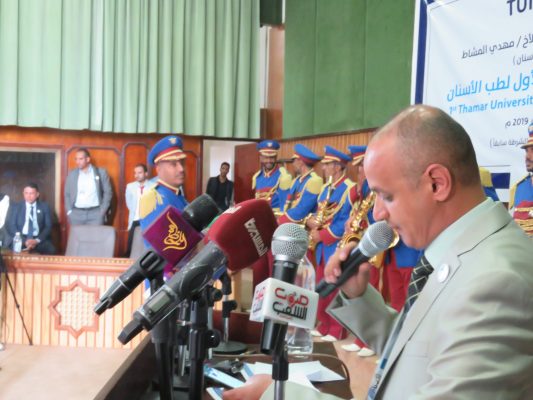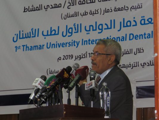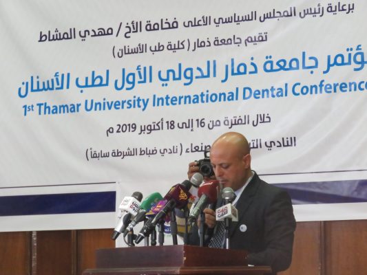 وقال:” مثلما كانت كلية طب الأسنان بجامعة ذمار هي الأولى على مستوى الجامعات الحكومية هي اليوم الأولى والسباقة في عقد مؤتمر علمي دولي في مجال طب الأسنان بمشاركة محلية وعربية ودولية “.