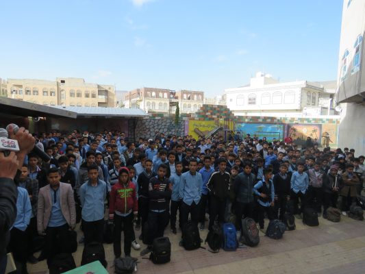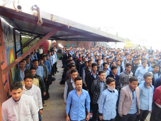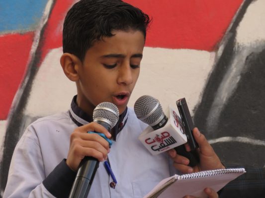 الطلاب الحاضرون في الإذاعة عبروا عن فرحتهم بحلول هذه الذكرى الميمونة برغم الأجواء العصيبة التي تمر بها البلاد من قتل وإرهاب وحصار من قبل أمريكا وزبانيتها السعوديين.