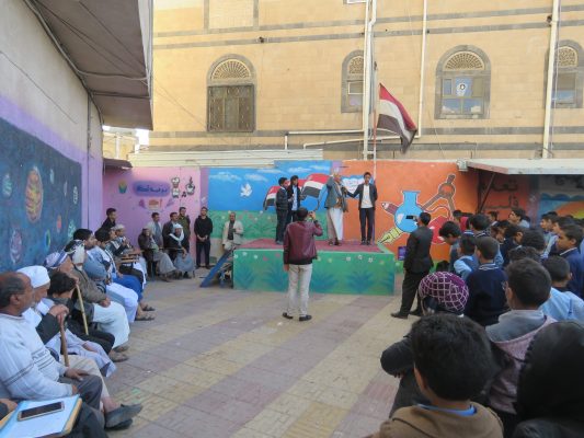 نظم طلاب وطالبات مدرسة اركان بمديرية معين إذاعة مدرسية بمناسبة ذكرى المولد النبوي الشريف.