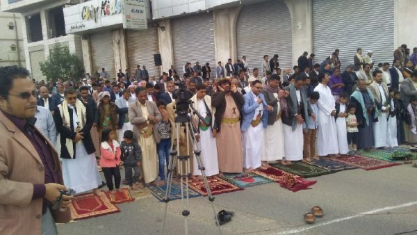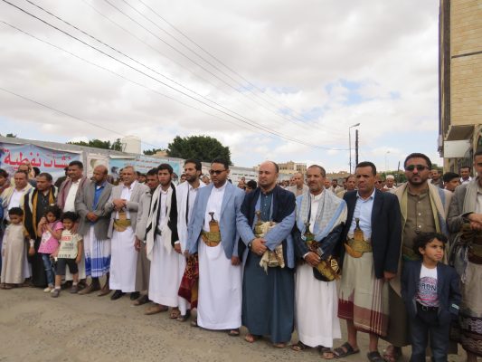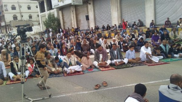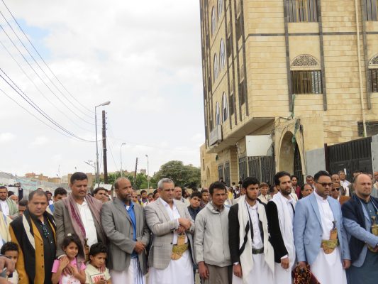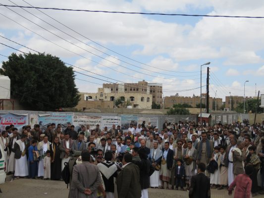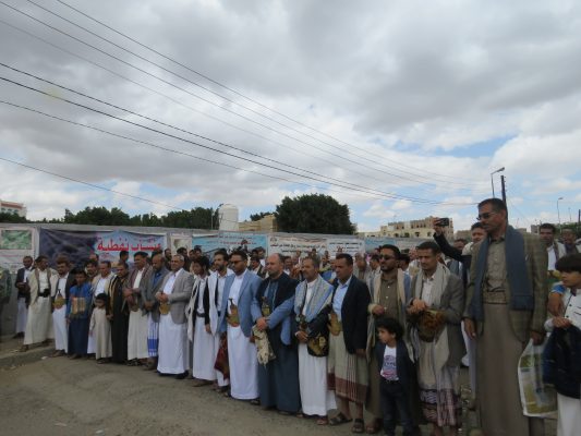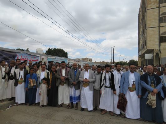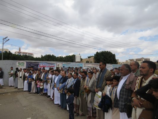 نظم موظفو شركة النفط اليمنية والنقابات الهيئات التابعة لها وجمع غفير من المواطنين اليوم وقفة احتجاجية حاشدة عقب صلاة الجمعة ال 28 أمام مكتب الامم المتحدة بصنعاء استنكاراً لعجز الامم المتحدة تجاه احتجاز السفن النفطية .