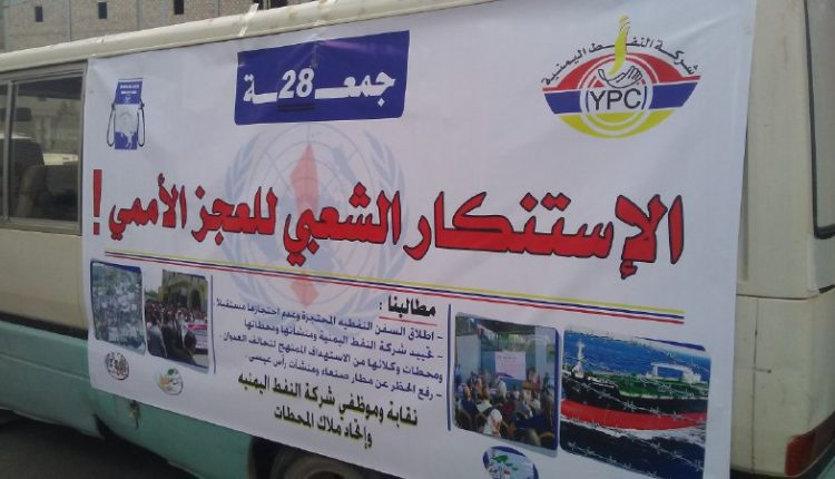 وخلال الوقفة الاحتجاجية التي حملت عنوان “الاستنكار الشعبي للعجز الاممي ” والتي حضرها المدير التنفيذي لشركة النفط اليمنية ياسر الواحدي وقيادات الشركة أكد الناطق الرسمي لشركة النفط اليمنية – مدير دائرة التوكيلات والنقل والتأمين أمين الشباطي وصول السفينتين عمير وانفرينو المحملتان بعشرين الف طن من مادة الديزل بالإضافة الى سفينة اخرى تحمل مادة المازوت المخصصة لكهرباء مدينة الحديدة .