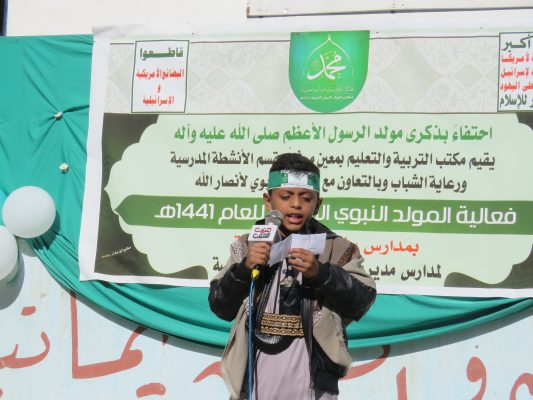 في إطار إقامة فعاليات بمناسبة المولد النبوي الشريف  وفي تغطية خاصة لإذاعة صوت الشعب تواصل نزولها الميداني اليومي للمدارس الحكومية والخاصة لتغطية الإذاعات المدرسية وفي صباح يوم الاربعاء الموافق 23-10-2019 م تم تغطية إذاعة لمدارس فن العلوم  مديرية معين والتي تخللها عدد من الكلمات والفقرات الإنشادية والأسكتشات التمثيلية بمشاركة الطلاب والمعلمين وإدارة المدرسة إيصالا  لرسالة  المجتمع اليمني بكل فئاته بأنه أكثر الشعوب  ارتباطا وقربا من النبي العدناني محمد صلى الله عليه وآله وسلم ولتعزيز حب النبي محمد صلوات الله عليه وآله في قلوب أبنائنا الطلاب