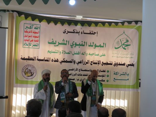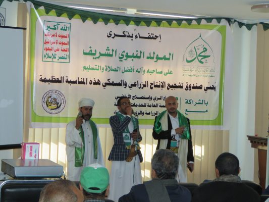 نظم صندوق تشجيع الانتاج الزراعي والسمكي اليوم بالشراكة مع قطاع الري بوزارة الزراعة والمؤسسة العامة للخدمات الزراعية ومكتب الزراعة بصنعاء، اليوم فعالية احتفالية بذكرى المولد.