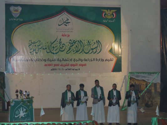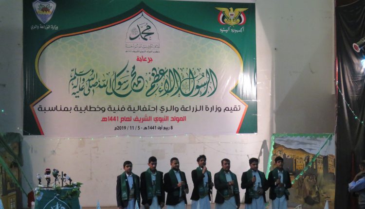 وفي الفعالية التي حضرها عضو المجلس السياسي الأعلى سلطان السامعي ووزيرا الشباب والرياضة حسن زيد والأشغال العامة والطرق غالب مطلق، أشار وزير الزراعة والري المهندس عبدالملك الثور إلى أهمية إحياء هذه المناسبة الدينية للاستفادة من سيرة الرسول الأعظم محمد عليه أفضل الصلاة وأتم التسليم .